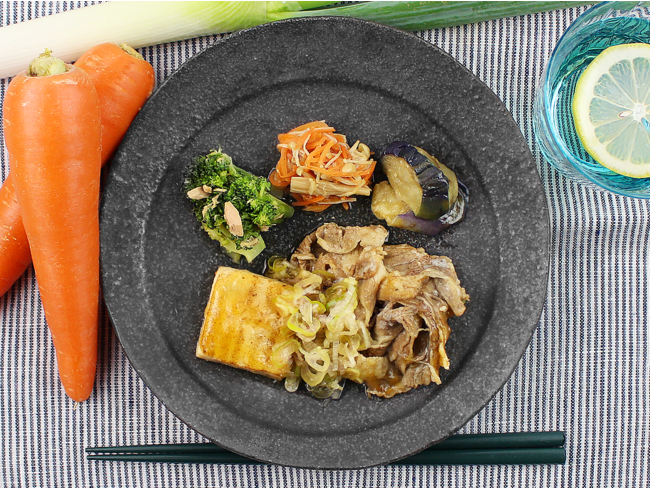 副菜は、ブロッコリーのツナあえ、えのきのごまぽん酢、茄子の味噌あえです。