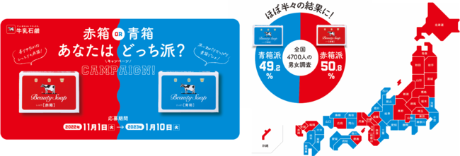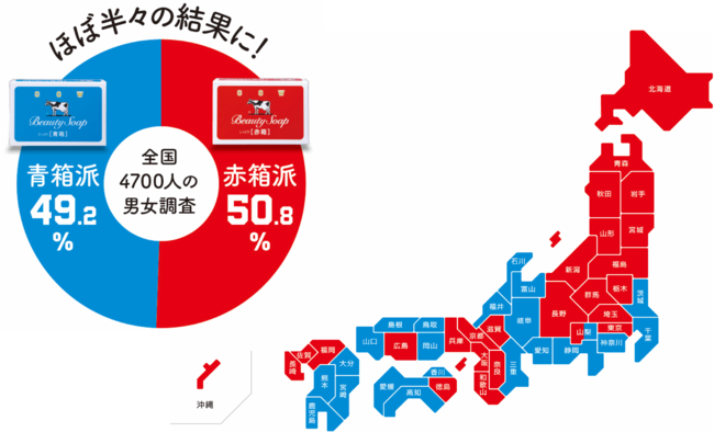 牛乳石鹸が全国4,700人を大調査!「赤箱・青箱どっち派?」調査を実施「赤箱」VS「青箱」は大接戦!大阪では赤箱派が70%!地域差による違いも明らかに