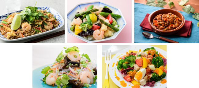 今回、新しく「青パパイヤと海老のパッタイ風」「彩り野菜と海老の八宝菜」「チリコンカン」「ホワイトセロリ香るヤムウンセン」「1/3日分の野菜が摂れるアメーラトマトとチキンのビタミンサラダ(1人前・2人前)」の計5種6品の新商品を発売します。「チリコンカン」は、食感の異なる4種の豆をスパイスの香る特製トマトチリソースで煮込み、そのままでもパンやごはんと合わせても楽しめる味付けにしました。また、クセが無くコリっとした食感が特徴的な青パパイヤを使用した「青パパイヤと海老のパッタイ風」や、レモンとナンプラーを使用したさっぱりとした味わいに、紫玉ねぎや小ねぎの香味野菜の香りがクセになる「ホワイトセロリ香るヤムウンセン」など、まだ日本に馴染みのない海外料理まで幅広く展開します。