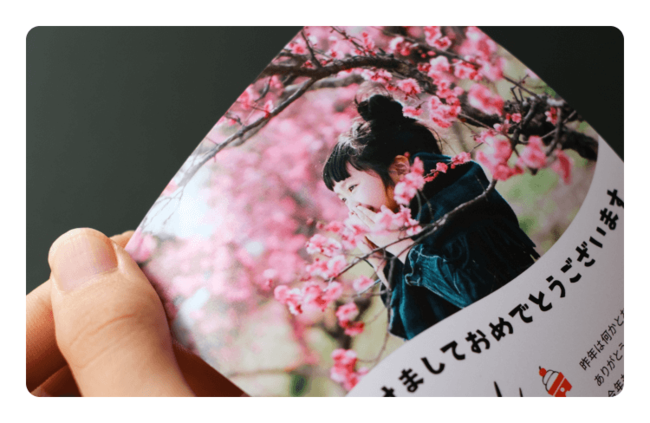 今年から世界最高水準のオンデマンド印刷機を導入しました。発色の良い仕上がりが特長で、耐光性にも優れているため、大切な年賀状がいつまでも色あせません。