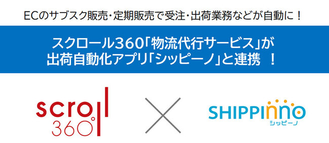 株式会社スクロール(本社:静岡県浜松市中区、代表取締役社長 鶴見 知久)の子会社である株式会社スクロール360(本社:静岡県浜松市中区、取締役社長:西田 耕三、以下当社)が提供する「物流代行サービス」と、シッピーノ株式会社(本社:神奈川県茅ヶ崎市、代表取締役:中島 匠、以下シッピーノ)が運営する出荷自動化アプリ「シッピーノ」が、連携を開始いたしました。これにより、大手ECモール・カートシステムでサブスクリプション(以下サブスク)型販売を行うEC・通販事業者様へのさらなる支援を実現いたします。