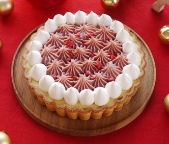 ・商品説明:さつまいもとラズベリーを合わせた甘酸っぱいクリームがアクセント。見た目にもクリスマスを感じられるお芋感たっぷりのタルトです。