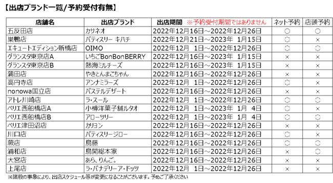 【出店ブランド一覧/予約受付有無】