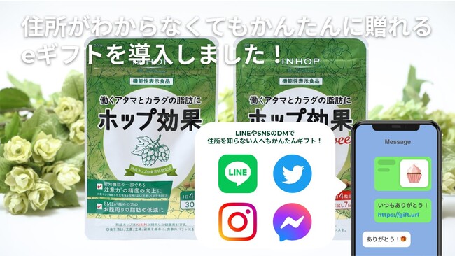 株式会社ハックルベリー(東京都渋谷区、代表取締役社長:安藤 祐輔、以下「ハックルベリー」)が提供する、通常ギフトはもちろん、住所を知らなくても贈れるeギフトにも対応したShopify(ショッピファイ)アプリ「All in gift」が史上初のW機能の機能性表示食品「働くアタマとカラダの脂肪に ホップ効果」を提供する「INHOP」(https://inhop.co.jp/)に導入されました。