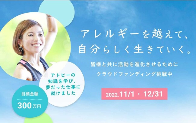 「アレルギーを越えて、自分らしく生きていく。」12月31日まで300万円を目標に初のクラウドファンディングに挑戦