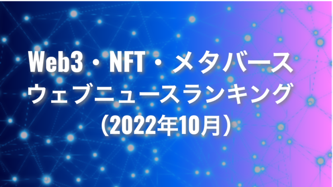 株式会社トドオナダ(代表取締役社長 松本泰行)は、2022年10月1日~10月31日までのWeb3・NFT・メタバースに関するウェブニュースについて調査・分析いたしました。