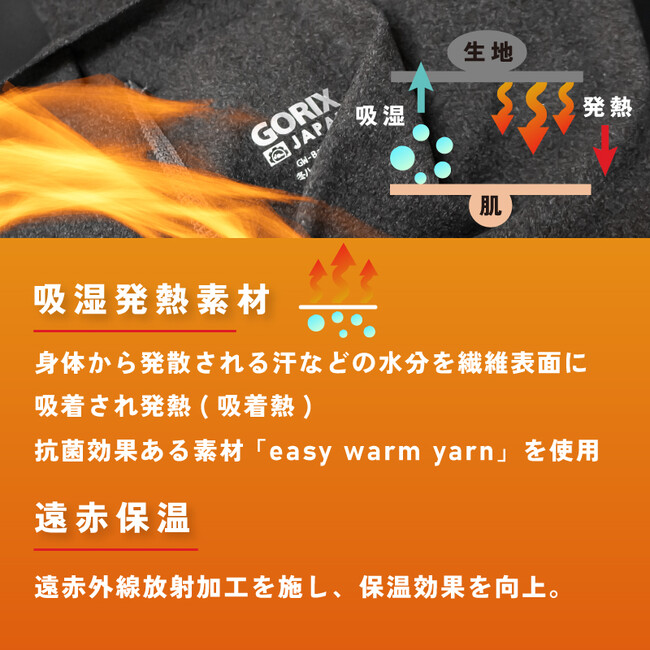 カラダから発する汗や水分を熱に変える”吸湿発熱素材”を使用しているため