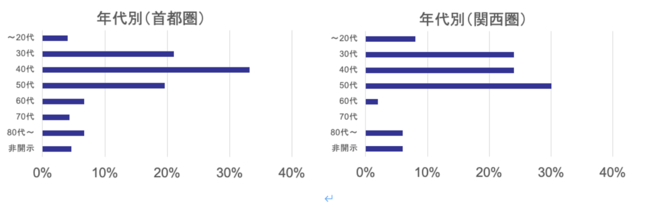利用者の年代別では30代~50代が半数以上を占め、首都圏では40代、関西圏では50代が最多の割合