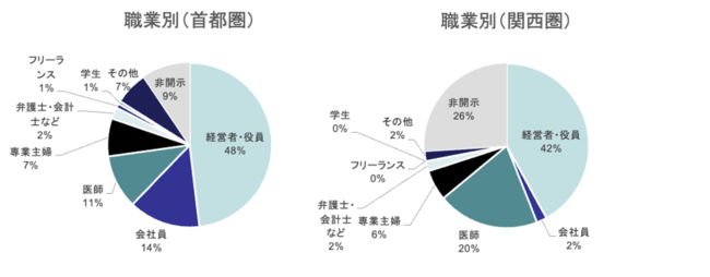 利用者の職業は経営者・会社役員が1位。首都圏では48.0%、関西圏では41.7%の割合を占める結果に