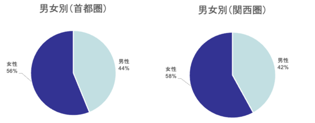 利用者の男女比では、首都圏・関西圏ともに女性が半数以上という結果になった