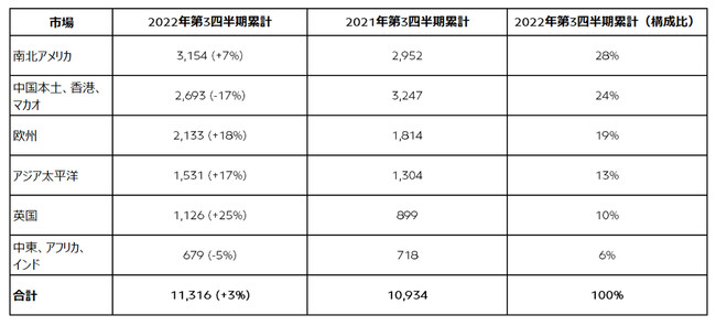 2022年1~9月期の販売台数は欧州で前年同期比18%増の2,133台でした。アジア太平洋地域も17%増の2桁成長でした。ベントレーが本社を置く英国では25%増の1,126台、ベントレーにとって最大の市場であり続ける南北アメリカは7%増の3,154台でした。