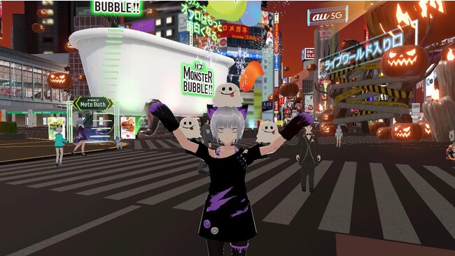 今年は、毎日楽しめるアトラクションとして、バブ MONSTER BUBBLEの巨大バスタブ、最新のトヨタカローラスポーツがハロウィーンに合わせて街中に出現したほか、貞子アバターに変身し街を徘徊したり、黒ひげ危機一発など日本発のクレイジーな体験を提供しました。また、「バーチャル渋谷」上に再現されたケーブルカー「ひばり号」には約1万人が乗車。昨年に引き続き、「ひばり号」を含むバーチャルハロウィーンでの収益の一部は、社会福祉法人渋谷区社会福祉協議会の子ども基金を通じて「こどもテーブル事業」へ寄付されます。