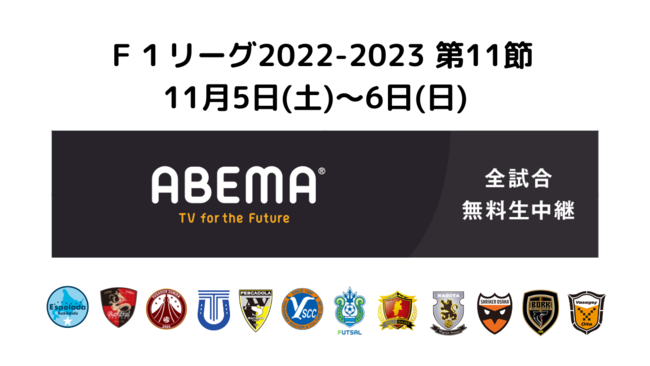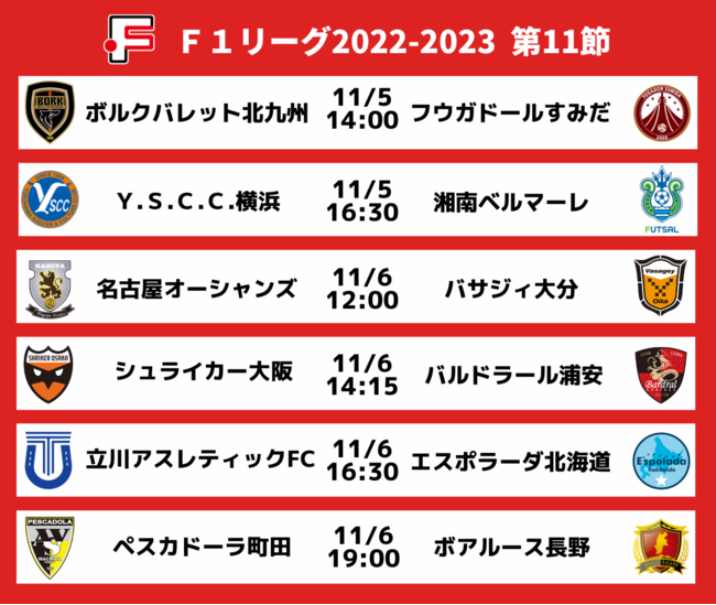 11月5日(土)、6日(日)にFリーグ2022-2023 ディビジョン1 第11節の6試合を開催いたします。