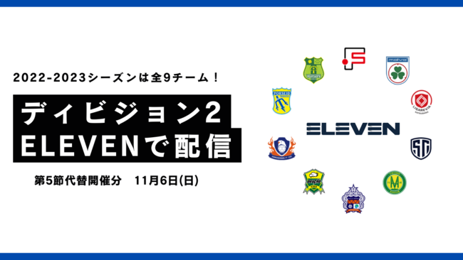 11月6日(日)に開催するFリーグ2022-2023 ディビジョン2 第5節の2試合を以下の通り、ELEVENにてライブ配信いたします!全試合を無料でご視聴いただけますので、ELEVENのアプリをダウンロードいただき、ぜひご視聴ください!