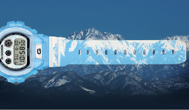 八村塁選手のシグネチャーモデル第3弾の『DW-6900RH』は、文字板に並んだ3つのインジケーターから“3つ目”の愛称で親しまれている「DW-6900」をベースモデルに、八村選手の出身地である富山県の立山連峰をデザインモチーフとした耐衝撃ウオッチです。