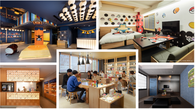 縁日を模したロビーで輪投げやスマートボールを楽しんだり、相撲をとったり、子どもたちも大喜びです。「ポケモンルーム」では、ベッドの上でお出迎えする巨大なカビゴンのぬいぐるみをはじめ、オリジナルデザインのお皿やカップを備えており、ポケモンファンにはたまらない特別な空間。子どもたちが忘れられない、楽しい思い出づくりにぴったりのホテルです。
