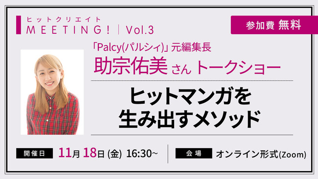 ぜひこの機会に、「ヒットクリエイトMeeting! Vol.3 ヒットマンガを生み出すメソッド」へご参加ください。