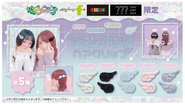 『#韓国っぽ』シリーズの一つとして、SNSでも話題の「天使の羽根ヘアクリップ」が「かぷえぼ」に登場。定番カラーのホワイト、ピンク、ブルーにプラスして、クールなブラックカラーやイオンファンタジーオリジナルのオーロラカラーの全5種を展開します。