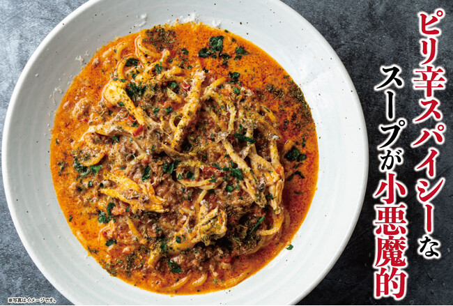 【生パスタ専門店:麦と卵】ピリッとした辛さが小悪魔風!冬に嬉しいホットスープ生パスタで身体の中からポカポカに!新メニューが期間限定で登場!店内製麺の生パスタとの相性バツグン!