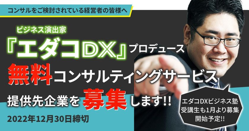 ビジネス演出家「エダコDX」プロデュースの無料コンサルティングサービス提供を希望する企業を募集!