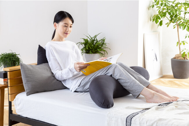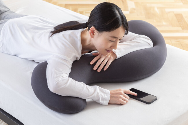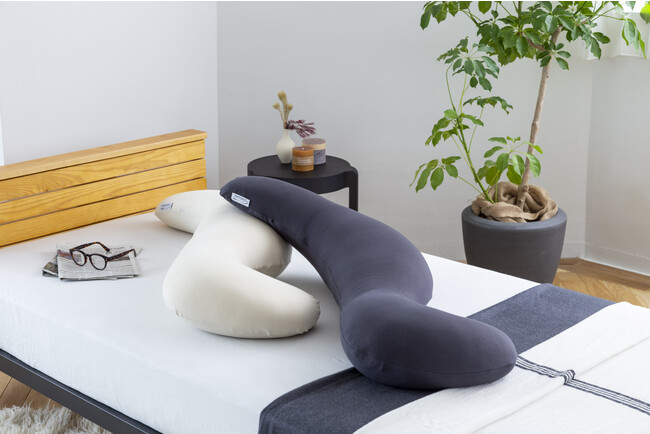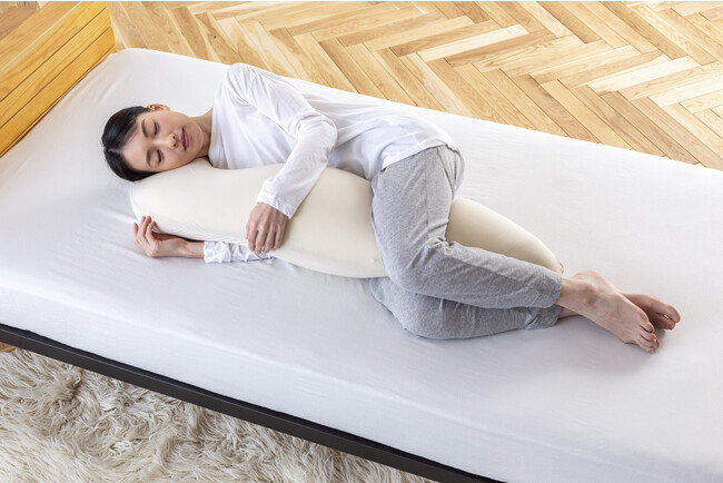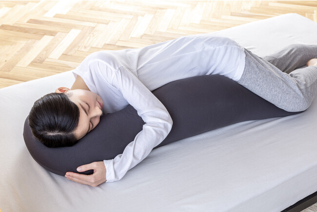 1.体を支える心地よいフィット感を追求した流線型のオリジナル形状は、適度な柔らかさと安定感で、横向きやシムス姿勢など、さまざまな姿勢をやさしくサポートします。抱きしめることで体圧は分散され、身体への負担を軽減、睡眠時以外にもリラックスタイムのお供としてもお使いいただけます。