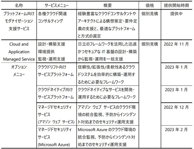「CAMS」のオプションメニューとして、パブリッククラウドを活用したIT基盤の設計プロセスを効率化する「クラウドリフト向けサービスプラットフォーム」「クラウドネイティブ*3向けサービスプラットフォーム」を提供します。