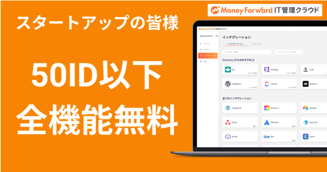 マネーフォワードi株式会社が提供するSaaS管理プラットフォーム『マネーフォワード IT管理クラウド』は、2022年11月11日で正式リリースから1年を迎えました。これを記念し、サービスのこれまでのあゆみを示したインフォグラフィックを公開しました。また、スタートアップ企業での活用を支援する「スタートアップ無料プラン(U50)」を提供開始することをお知らせいたします。