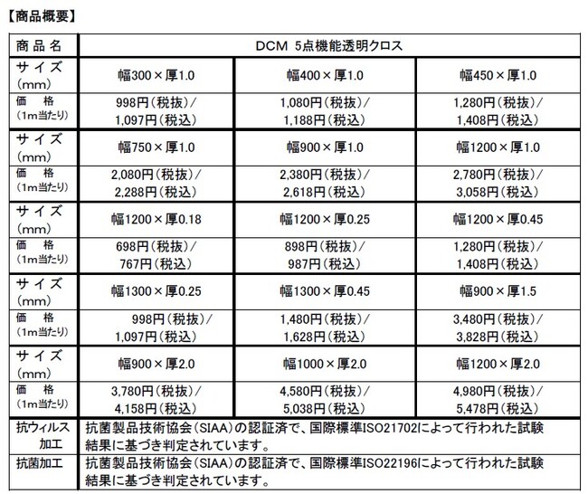 抗ウイルス・抗菌機能で衛生的「DCM5点機能透明クロス」新発売