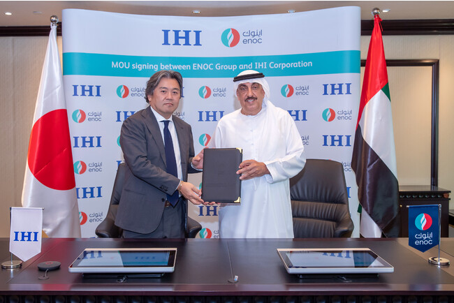 IHIはこのたび,アラブ首長国連邦(UAE)・ドバイ首長国有石油・ガス公社であるEmirates National Oil Company*1(ENOC)と,UAE・ドバイおよび周辺首長国において,豊富な太陽光資源を活用した再生可能エネルギー由来のグリーンアンモニア製造・販売の事業性を検討・調査する覚書を締結しました。本件は実現すると,ドバイ首長国初となるグリーンアンモニア事業となります。