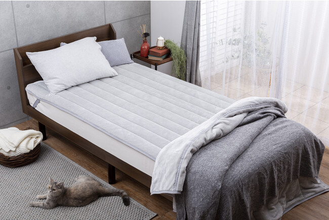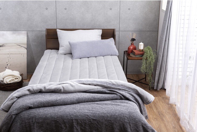 2. 極細繊維「マイクロフランネル」を一般的なフランネル敷パッドの1.4倍の綿密度で仕立てた贅沢な一枚。とろけるような極上の質感と肌に触れた時のやわらかさを追求しました。またキルトパターンにはシンプルな直線ラインを採用。身体との接地面を大きくすることで、 保温性を高く感じられるように工夫しています。空気が乾燥する冬のお悩み静電気対策として、基布部分に制電性に優れた特殊レーヨン素材を採用。肌に触れた時の嫌なパチパチ感が抑えられるので、安心です。