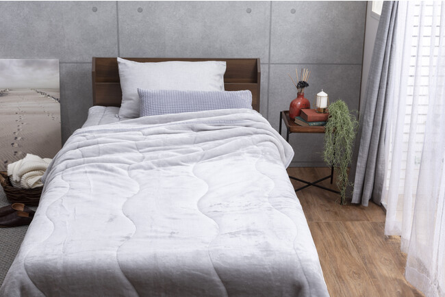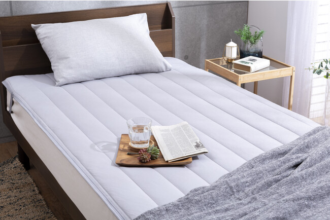 1.人が寝ている間に出る汗や湿気を吸収し、熱に変換する特殊素材を使用した“Fab Warm(R)️”シリーズ第一弾商品。マイクロフランネル面・中綿・ピーチスキン面の3層構造になっており、マイクロフランネル素材だけではなく、中綿にも吸湿発熱素材を使用することで、未加工品と比べ最大約+2.5℃の暖かさを実現しました。中綿には吸湿発熱綿と抗菌防臭機能綿をプラスした独自開発のブレンド素材を採用。優れた抗菌防臭効果で細菌の増殖を抑制、防臭効果を発揮します。