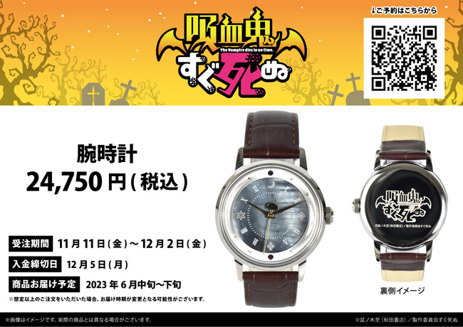 細部までこだわり抜いて制作された今回の新作アイテム。作品の世界観を存分に堪能できる腕時計とともに、TVアニメ『吸血鬼すぐ死ぬ』の放送1周年をお祝いしてみてはいかがでしょうか?
