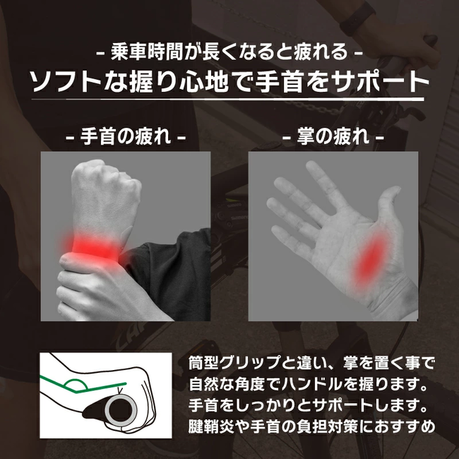 グリップが柔らかく路面からのショックを吸収v 振動をダイレクトに受けず体へのダメージを減らします