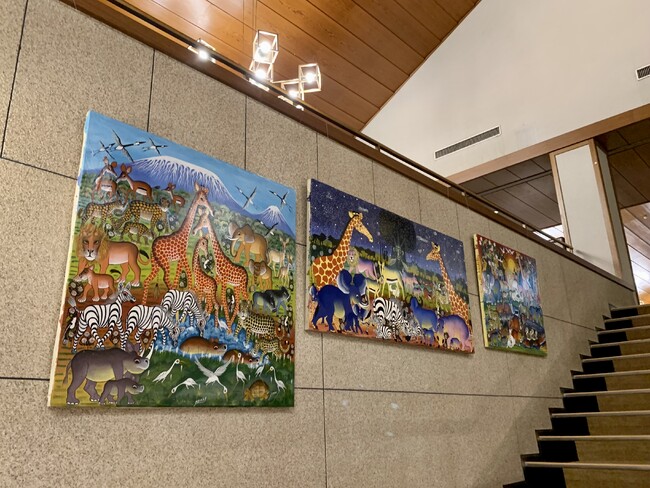 作品展示は11月12日(土)より、金乃台カントリークラブのクラブハウスにて実施中です。ゴルフ場では異例のアート展というだけでなく、2Fフロアを埋め尽くすような大々的な作品展示は、金乃台カントリークラブのご厚意があってこそ成立するものとなりました。作品は休憩ラウンジや一部個室にも展示しており、ゆっくりとご覧いただけます。なお、コンペに参加されない方でも、作品をご購入いただくことは可能です。