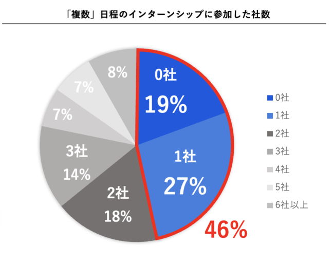 2. 46%の学生が、「複数日程のインターンシップに参加したのは1社以下」と回答。