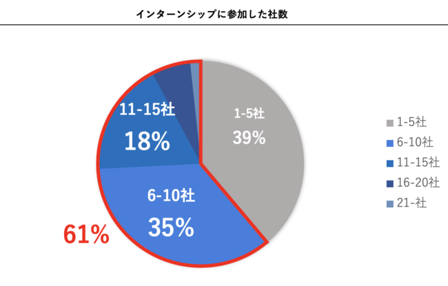 1. 61%の学生が6社以上の企業インターンシップに参加。