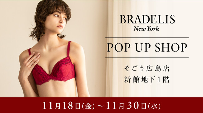 補整下着BRADELIS New York(ブラデリスニューヨーク)を展開するゴールドフラッグ株式会社(本社:大阪府大阪市中央区、代表取締役社長:平久保 晃世)は、そごう広島店 新館地下1階に、2022年11月18日(金)~11月30日(水)の13日間「BRADELIS New York(ブラデリスニューヨーク)」のポップアップショップを展開いたします。
