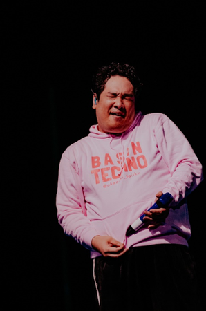 そして、この企画展のプログラムのなかで「『ゲームは、社交場だ。』with 岡崎体育」を手掛けた岡崎体育と、「エレクトロニクスは、ストリートだ。』with Creepy Nuts」を手掛けたCreepy Nutsの2組が登場した、完全招待制ライブ「前夜祭ライブ 岡崎体育×Creepy Nuts」が11月10日、ロームシアター京都、サウスホールにて行われた。