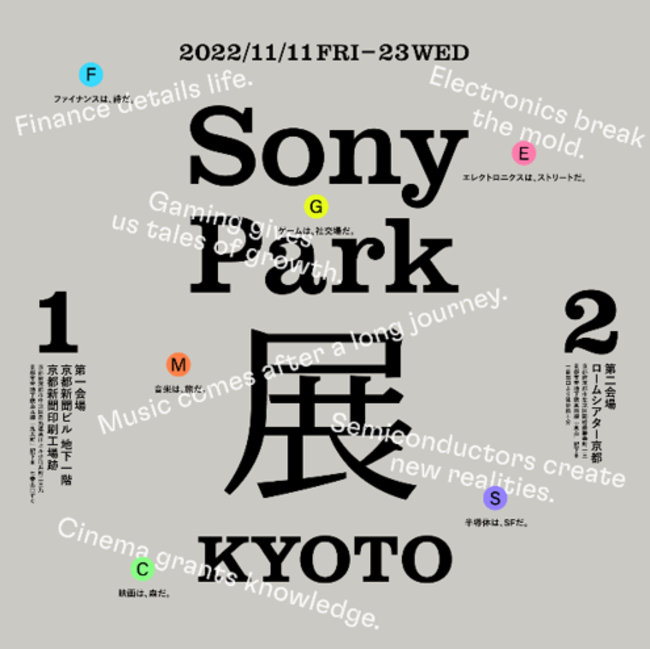 2021年夏にGinza Sony Parkにて開催され、オンライン含めのべ100万人を超える体験者が参加し、好評のうちに幕を閉じたSony Park展。ソニーが取り組んでいる「ゲーム」「音楽」「映画」「エレクトロニクス」「半導体」「ファイナンス」の6つの分野を、「社交場」「旅」「森」「ストリート」「SF」「詩」という6つの言葉で変換し、そのイメージを6組のアーティストが「表現」として形にするこのプロジェクトが、11月11日から23日まで、 京都新聞ビル地下1階と、ロームシアター京都の2箇所にて、「Sony Park展 KYOTO」として開催される。