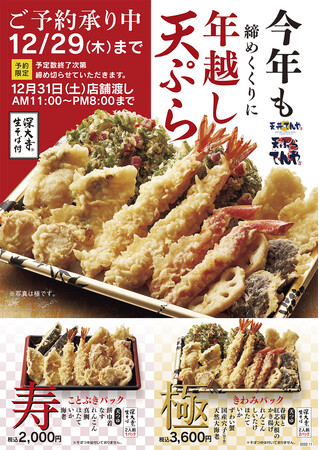 ~2022年も年越しは天丼てんやと~年末恒例・ご予約限定『てんや年越し天ぷら』3商品 11月24日(木)より店頭予約受付開始!