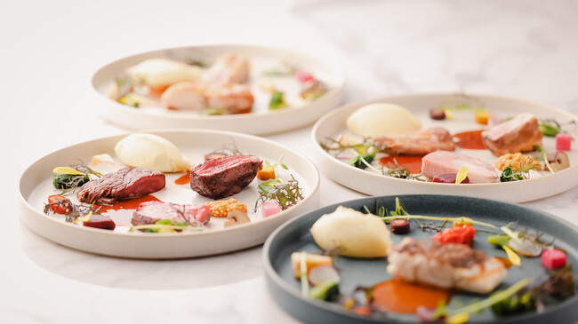 ご宿泊のお客さまはもちろん、お買い物やお仕事帰り、デートや小規模パーティーまで、気軽に立ち寄れる普段使いから特別なひとときまで多様なダイニングシーンでお使いいただけるTERRACE&DINING ZERO。ランチタイムには、4種類から選べるメイン料理または2種類から選べるパスタを中心に、6種[KY有1] を盛り合わせる前菜プレート、約10種類からお好きなだけお召し上がりいただけるミニデザートブッフェなど5品を組み合わせたランチセットをご用意します。ひとつひとつの食材にこだわりをもつメイン料理には、SDGsの視点からもその魅力が見直されている北海道経産牛や、自然豊かな環境で飼育された柔らかい霜降りが特徴の京都産日吉豚、甘みとコクがある丹波産奥丹波鶏などを採用しました。今後は、野菜ソムリエプロの資格を有すシェフ・菅原が選ぶ大阪・京都を中心とした関西の食材、また北海道での経験を生かした素材をも盛り込み、地域共創と融和させたカジュアルでありながらも本格的なメニューをご提供していく予定です。