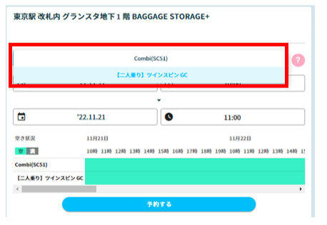 2.下図のように貸出場所情報が表示された、日時選択上にあるベビーカー選択欄から