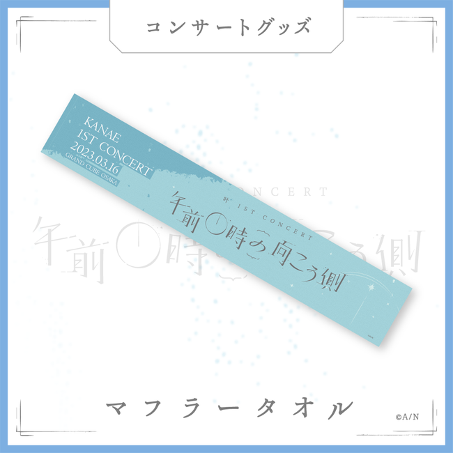 2023年3月16日(木)に開催される「叶 1st Concert『午前0時の向こう側』」(https://event.nijisanji.app/kanae_1stconcert/)のためにデザインされたコンサートグッズが登場!