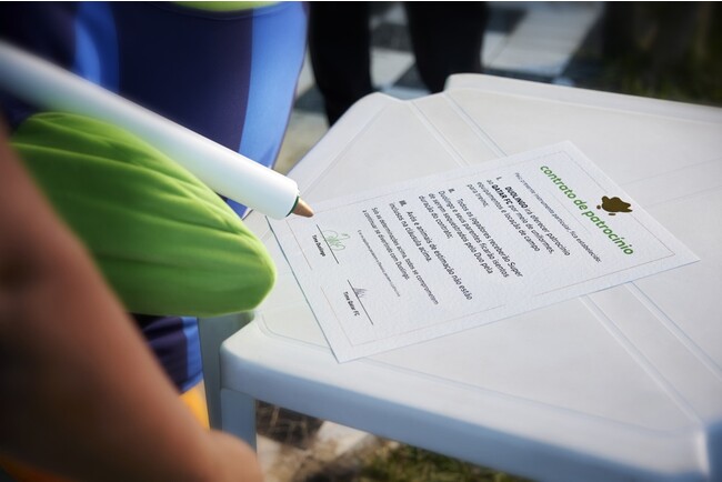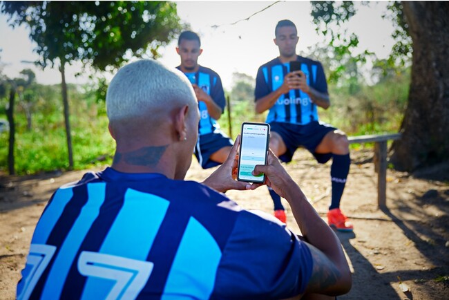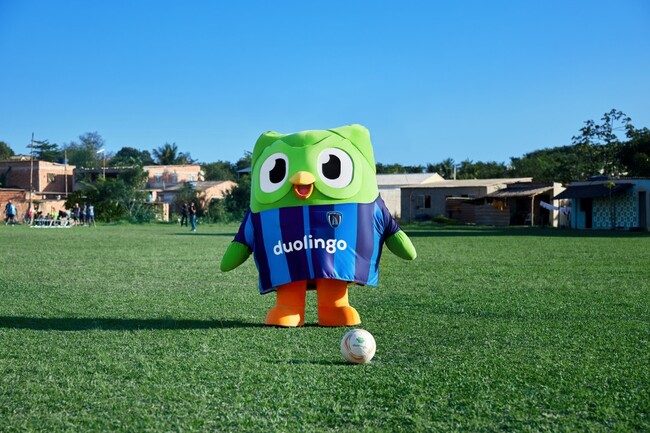 そんなわけで、Duolingoは2022年、オフィシャルスポンサーとなりました。といってもそっちの■■■■■■■ではありません!Qatar F.C.です!Qatar F.C.は、ブラジル・リオデジャネイロの小さな町を拠点とするアマチュアサッカーチームで、スポーツと教育を通じて地域社会を支援しています。今回の遊び心溢れるキャンペーンでは、Duolingoのロゴが入った地元チームの新しいユニフォームが導入され、Qatar F.C.公式マスコットとしてフクロウのDuoが就任します。