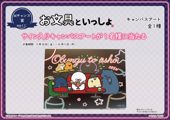 「eeoくじ」を3,000円(税込)以上お買い上げいただくと抽選に参加できる“Wチャンス賞”も見逃せません! Wチャンス賞では抽選で1名様に、イラストレーター・お文具のサインが入った「サイン入りキャンバスアート(全1種)」が当たります。ぜひチャレンジしてみてください!