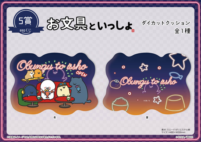 今回の「eeoくじ」の景品には、お文具さんやプリンさんたちとともにネオンやカセットが描かれた、どこか懐かしいテーマの描き下ろしイラストを使用しています。この機会をどうぞお見逃しなく!