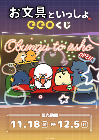描き下ろしイラストを使用した新作グッズが豪華景品で当たる、『お文具といっしょ』のオンラインくじ「eeoくじ」が登場! 11月18日~12月5日の期間限定でeeo Store(通販)にて発売されます。
