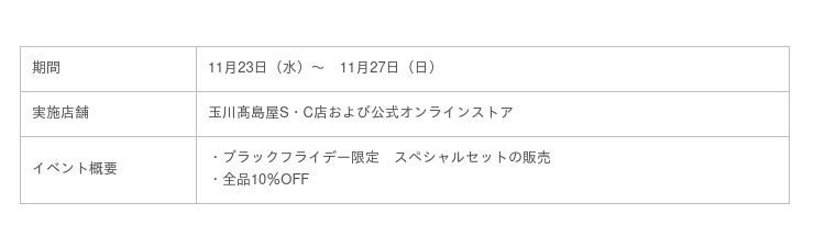 オンラインストアと玉川高島屋S・C店の同時開催で、黒の持つ魅力を存分に感じ、お得にお買い物を楽しんでいただくスペシャルな5日間が始まります!