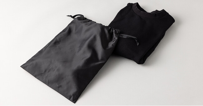 着心地の秘密は糸と編みの製法。たっぷり空気を含ませながら糸を紡ぐ結束紡績という手法により、ふっくらと肉厚でありながら柔らかく軽い生地を生み出します。この糸の性質を最大限生かすために編みの工程でポリウレタン糸を混合し、伸縮性と滑らかな風合いを実現しました。速乾性にも優れ、ご自宅でのリラックス時間はもちろん近所のお出かけにも。ルームウェアの概念を越える着心地にとことんこだわりました。オリジナル巾着と合わせて大切な方へのギフトにもおすすめです。