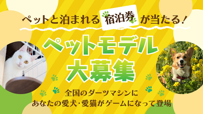【ペットモデル募集】あなたの愛犬・愛猫がダーツのゲーム画面に ペットと泊まれる宿泊券などが当たる「わんにゃんダーツキャンペーン」が開始